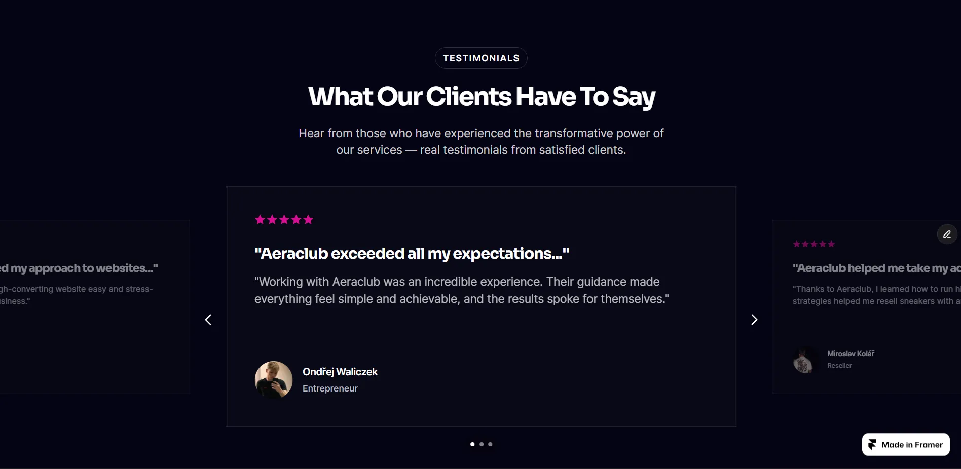 CMS systém Framer byl využit pro blog, aby mohl klient samostatně přidávat články a obsah bez technické podpory.
