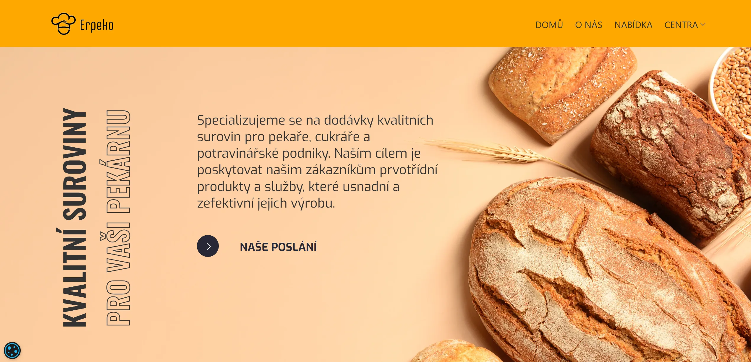 Společnost Erpeko Trade, dodavatel surovin pro pekaře a cukráře, nás oslovila s požadavkem na kompletní redesign firemního webu. Původní stránka byla výrazně zastaralá, nepřehledná a obsahovala jen minimum informací. To bylo problematické zejména pro B2B odběratele, kteří potřebují rychle získat přehled o službách, nabídce a kvalitě dodavatele.